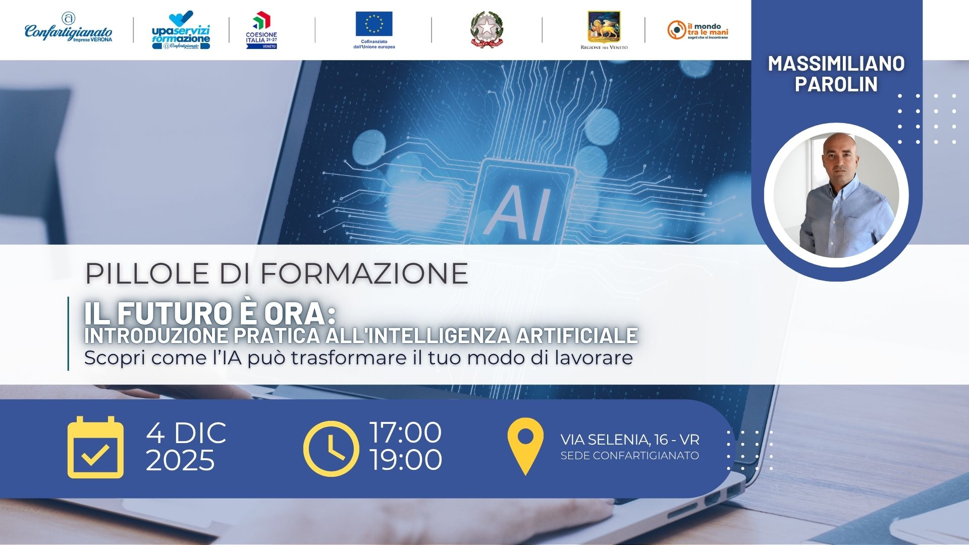 Sarà un incontro introduttivo, pensato per prendere confidenza con l’IA e capire come può diventare un aiuto concreto, semplice da integrare nelle attività quotidiane.
